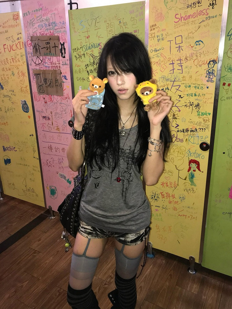 Y2k Punk Style Gray T-shirt with Subcultural Print