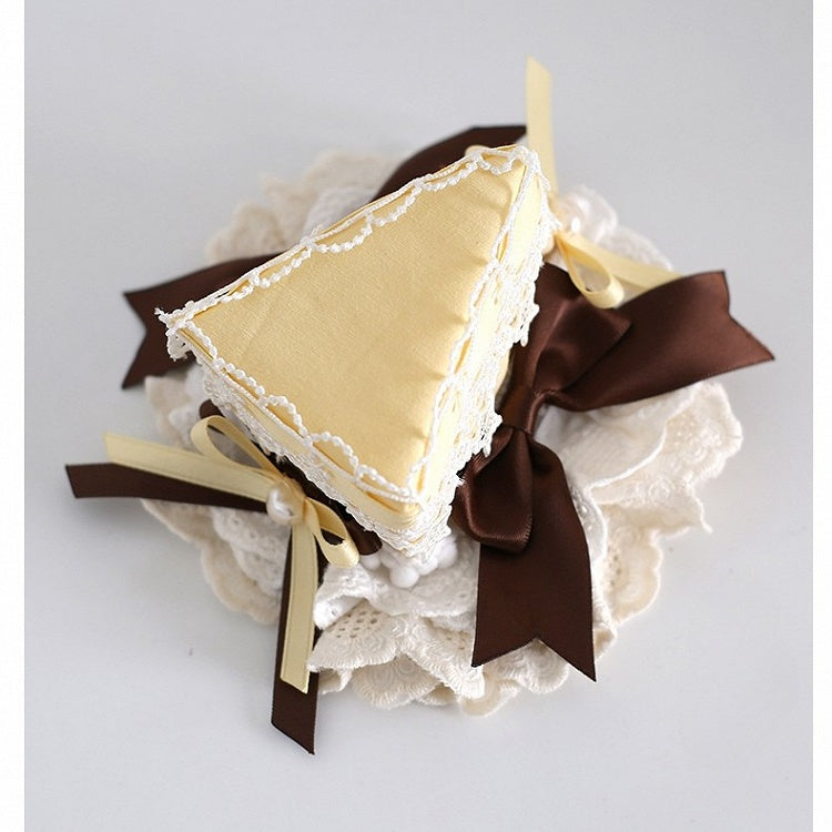 Yellow&Brown Sweet Lolita Beaded Decorated Bowknot Details Lace Trim Cake Mini Hat